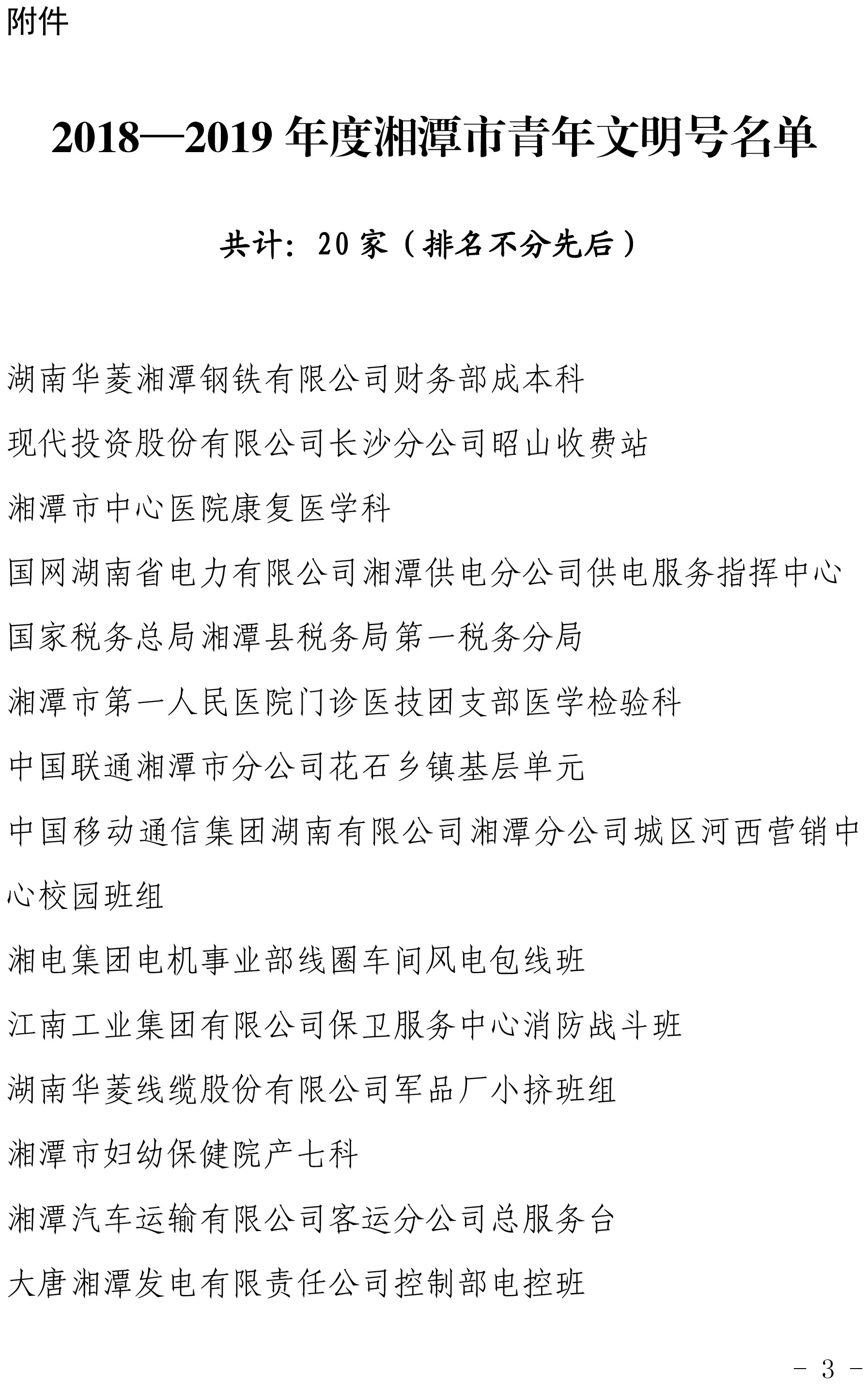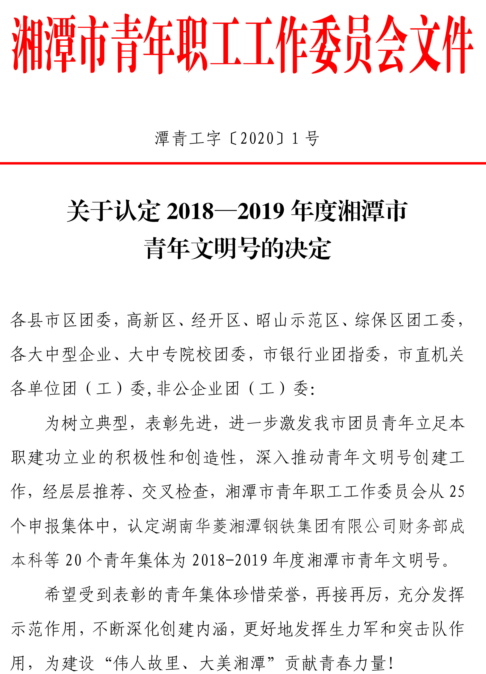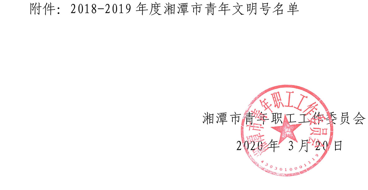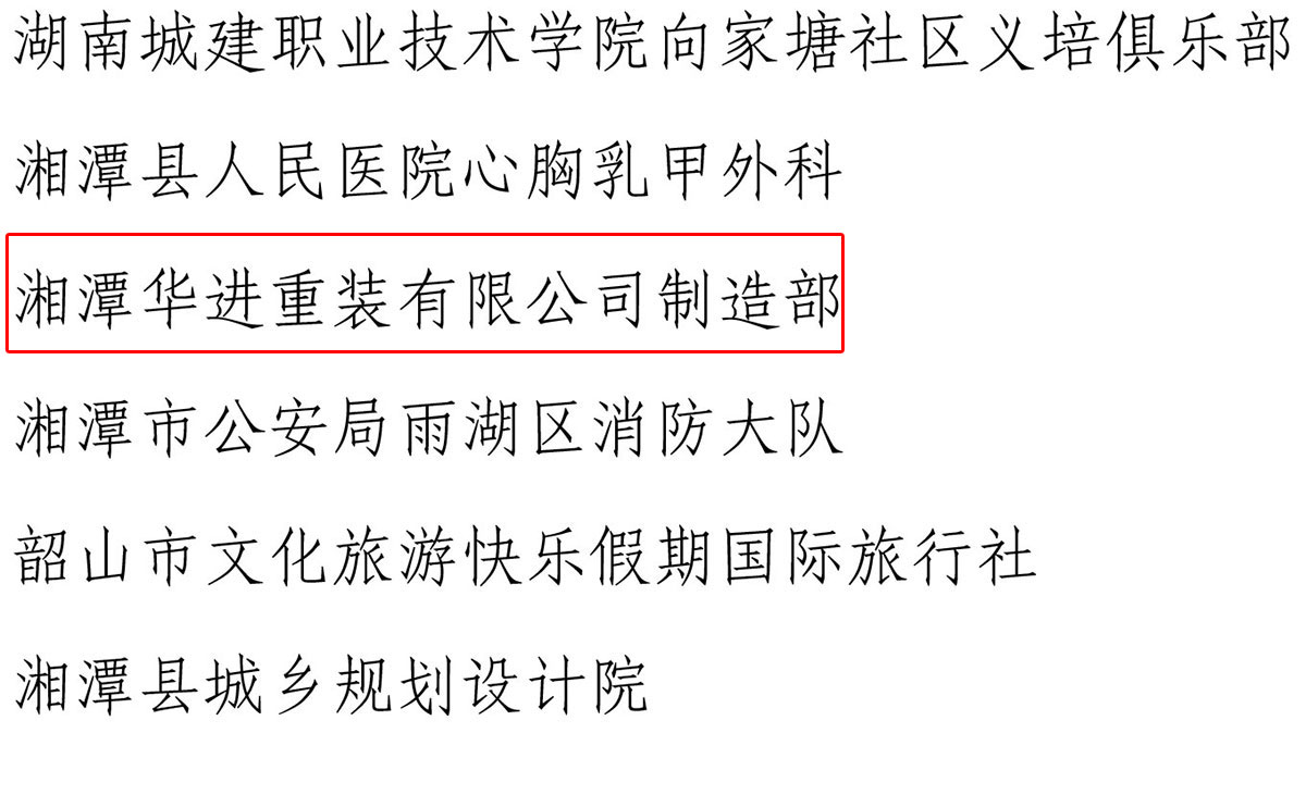 為樹立典型,表彰先進,進一步激發(fā)湘潭市團員青年立足本職建功立業(yè)的積極性和創(chuàng)造性,深入推動青年文明號創(chuàng)建工作,經(jīng)層層推薦、交叉檢查,湘潭市青年職工工作委員會從 25個申報集體中,認定湘潭華進重裝有限公司制造部等 20 個青年集體為 2018-2019 年度湘潭市青年文明號。