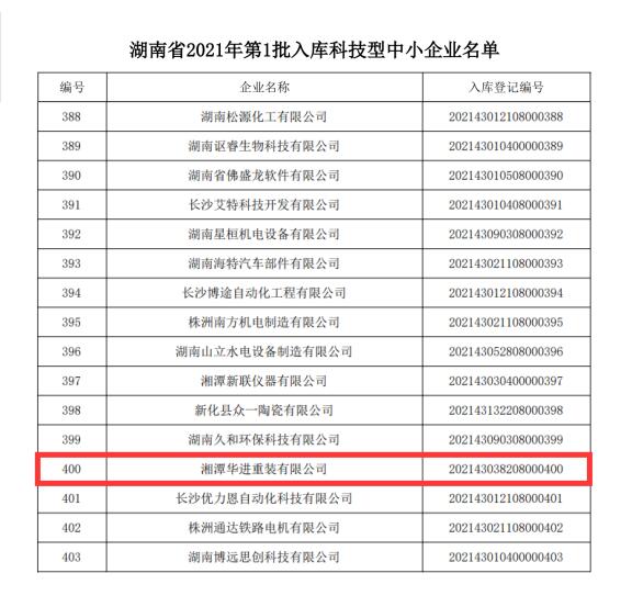 根據(jù)《科技型中小企業(yè)評價辦法》(國科發(fā)政〔2017〕115號)和《科技型中小企業(yè)評價辦法工作指引(試行)》(國科火字〔2017〕144號)要求,經(jīng)審查、公示通過,華進重裝等788家企業(yè)入選2021年第一批擬入庫科技型中小企業(yè)名單。