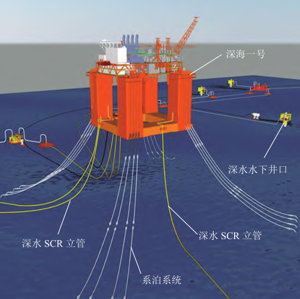 圖6 “深海一號(hào)”能源站及深水立管模型圖