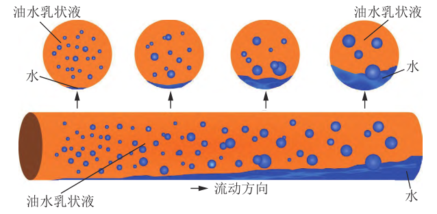 圖7 稠油混輸管道軸向與周向油水分布變化示意圖