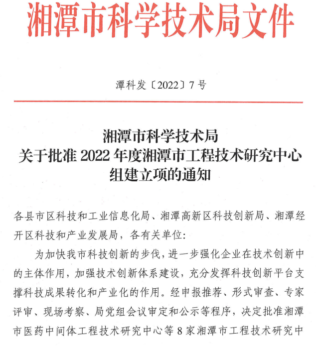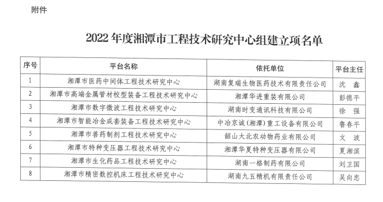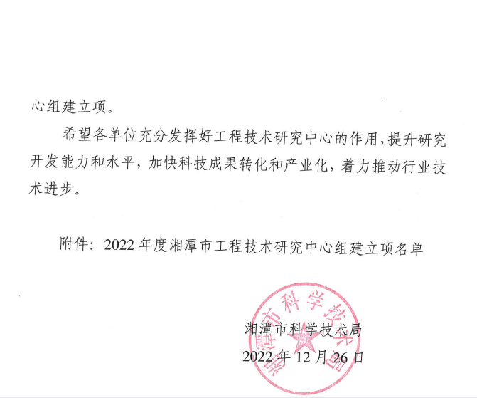 2022年12月27日,湘潭市科技局發(fā)布了關(guān)于批準(zhǔn)2022年度湘潭市工程技術(shù)研究中心組建立項的通知,經(jīng)申報推薦、形式審查、專家評審、現(xiàn)場考察、局黨組會議審定和公示等程序,決定批準(zhǔn)湘潭華進重裝有限公司等8家湘潭市工程技術(shù)研究中心組建立項。